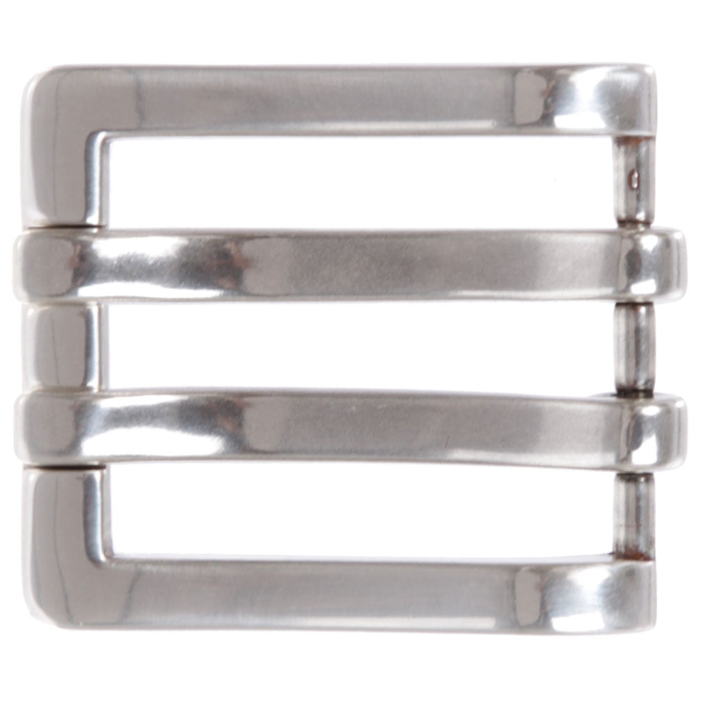 1 5/8 (40 mm) Silver Tone Rectangular Flat Double Prong Belt Buckle